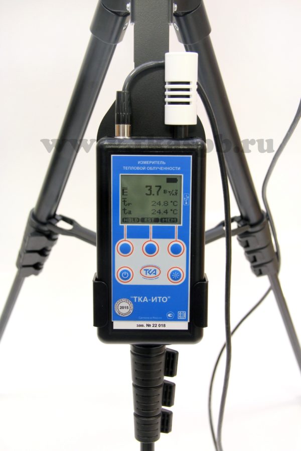 Прибор позволяет упростить и ускорить необходимые измерения интенсивности теплового облучения. На основе этого возможно рассчитать среднюю радиационную температуру и величину экспозиции теплового облучения. ТКА-ИТО полностью отвечает требованиям нормативных документов по измерению тепловой облучённости. Регистрирует тепловое излучение с углом обзора 3600. Обладает расширенным диапазоном измерений до 3500 Вт/м2, имеет повышенное быстродействие, благодаря оригинальной конструкции ЧШ, на дисплей прибора выводится информация о величинах тепловой облучённости, радиационной и окружающей температурах.